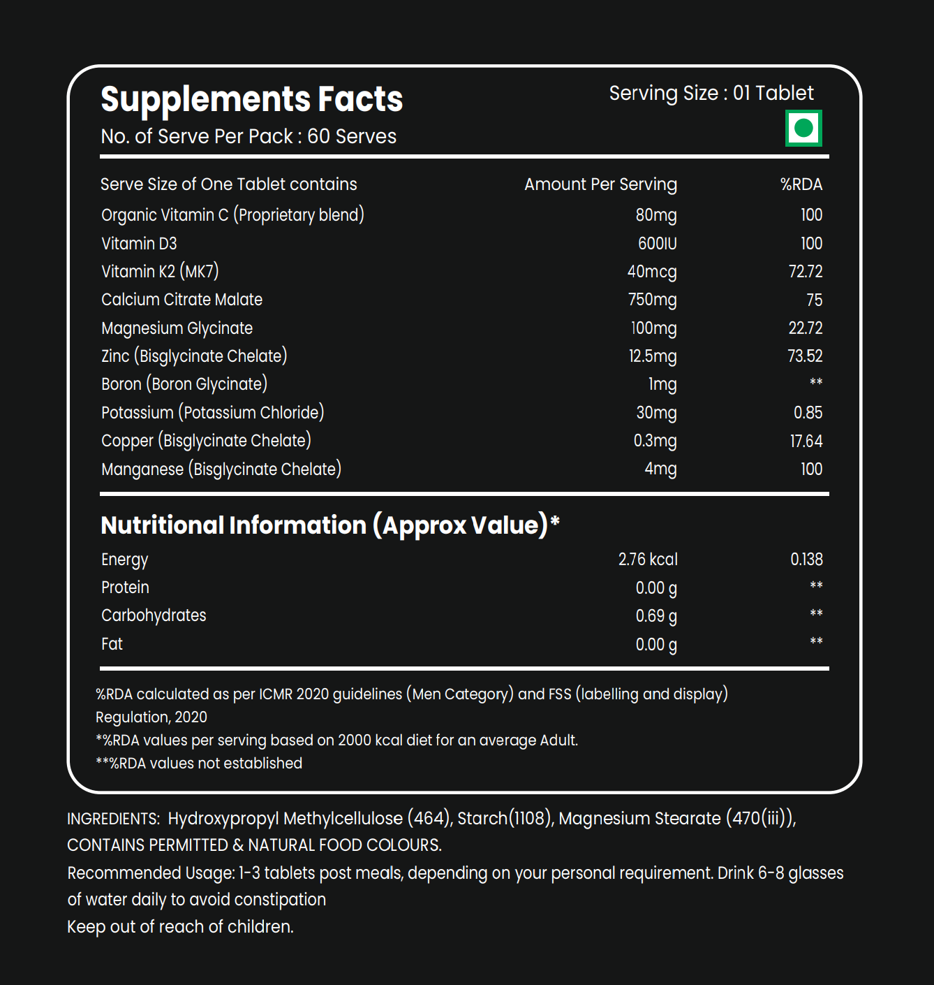 - For better results, pair with Vitamin D3K2 and Magnesium Glycinate supplements