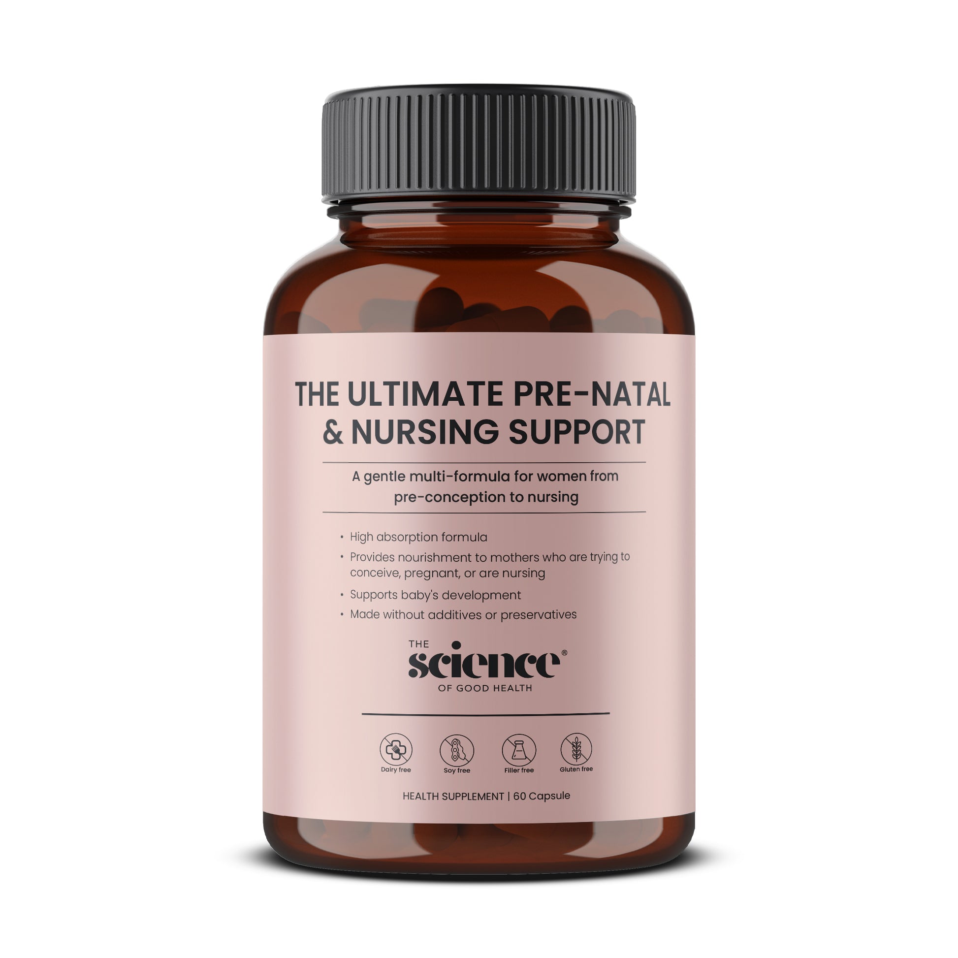 The Science of Good Health presents The Ultimate Pre-Natal & Nursing Nutrients, a scientifically balanced formulation crafted to nourish women from pre-conception through pregnancy and the nursing period. This comprehensive multi-vitamin blend is designed to meet the evolving nutritional needs of mothers and their growing babies, ensuring optimal wellness during every stage of motherhood.