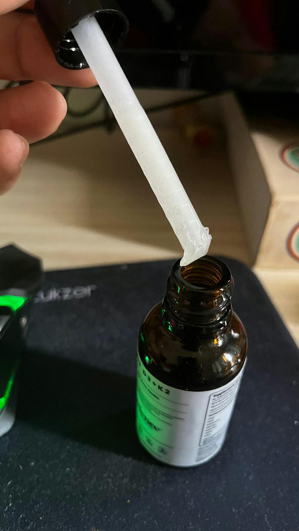 I ordered a Vitamin D +K2 supplement and the dropper inside the vial melted in the solution within a one week and the supplement started tasting like plastic.